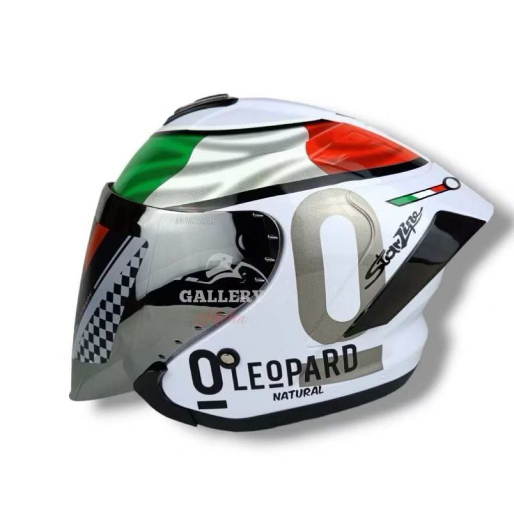 [Star] HELM MOTOR Js Armor Yakuza || Motif Leopard Aquamarine & Polos SNI Dewasa Ganteng
