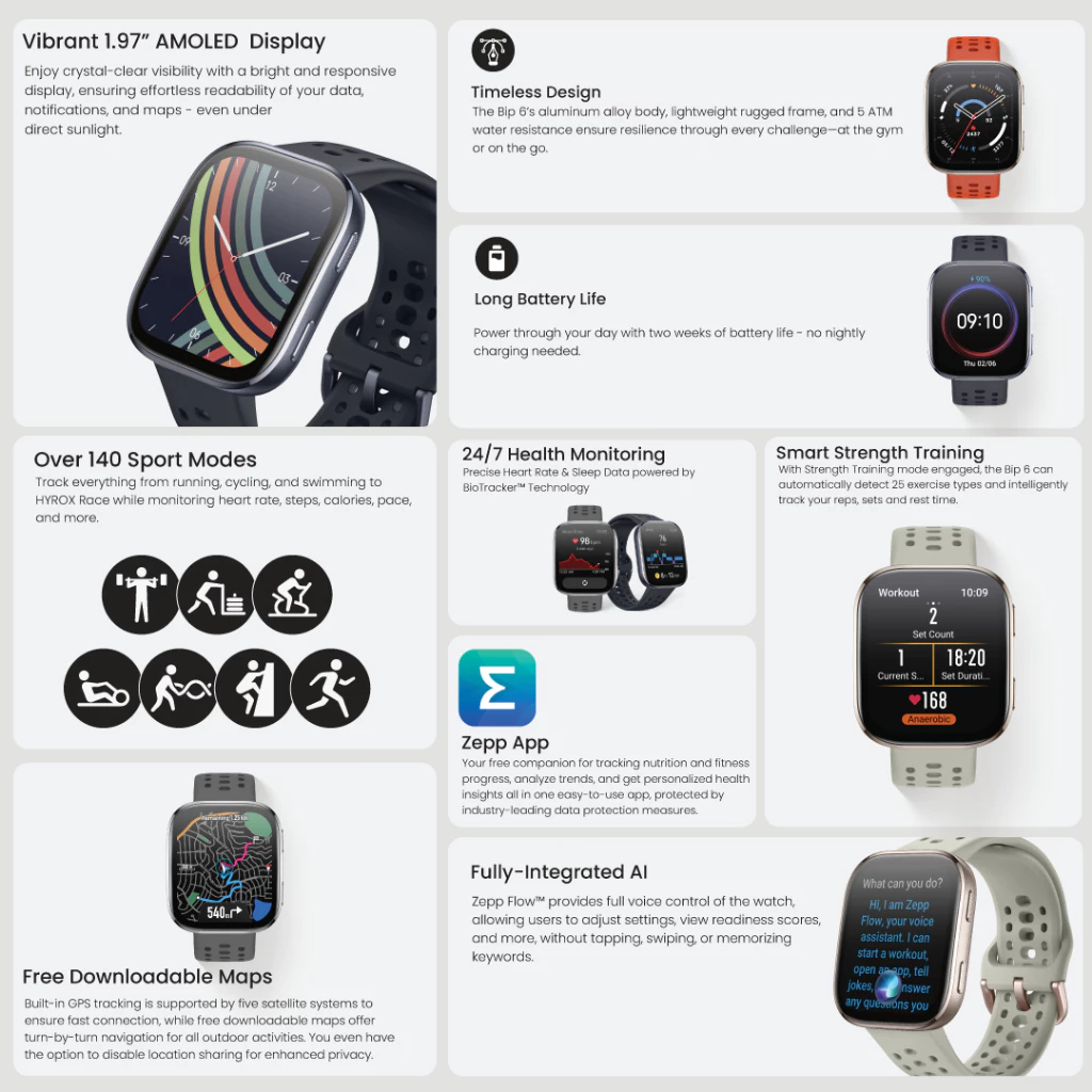 Amazfit Bip 6 Smartwatch Amoled 1.97" |140 Mode Olahraga | 5 Atm | Health Monitoring