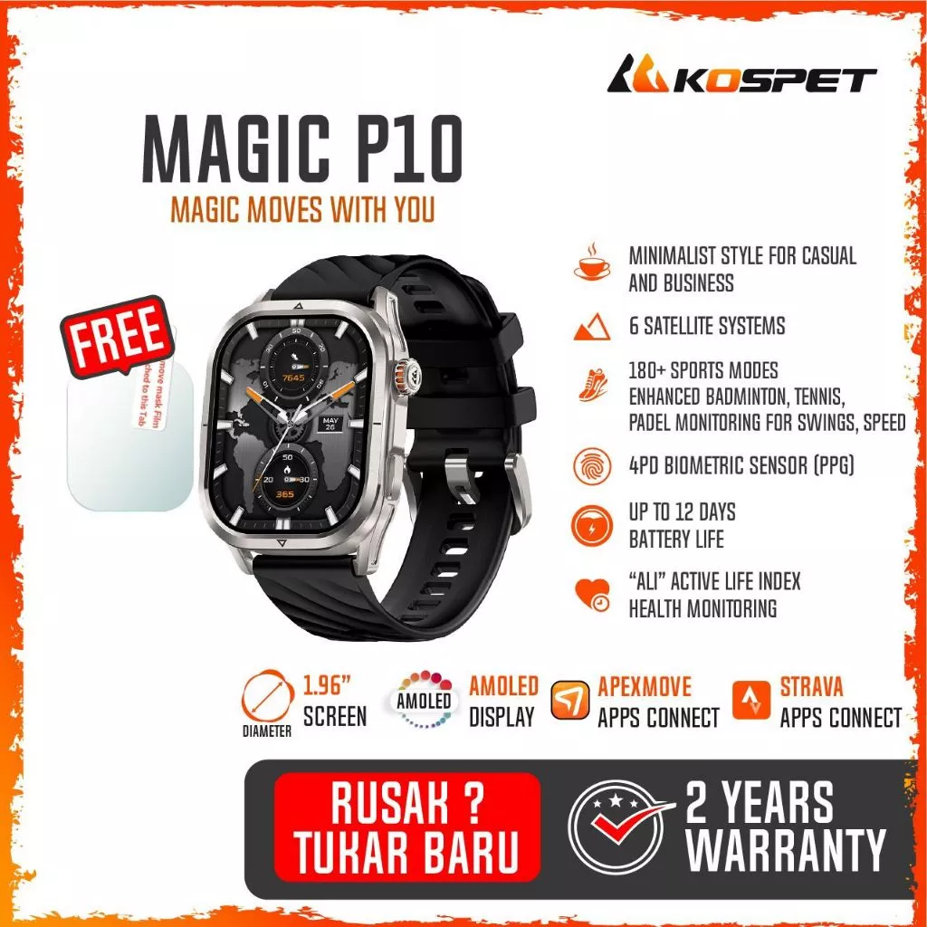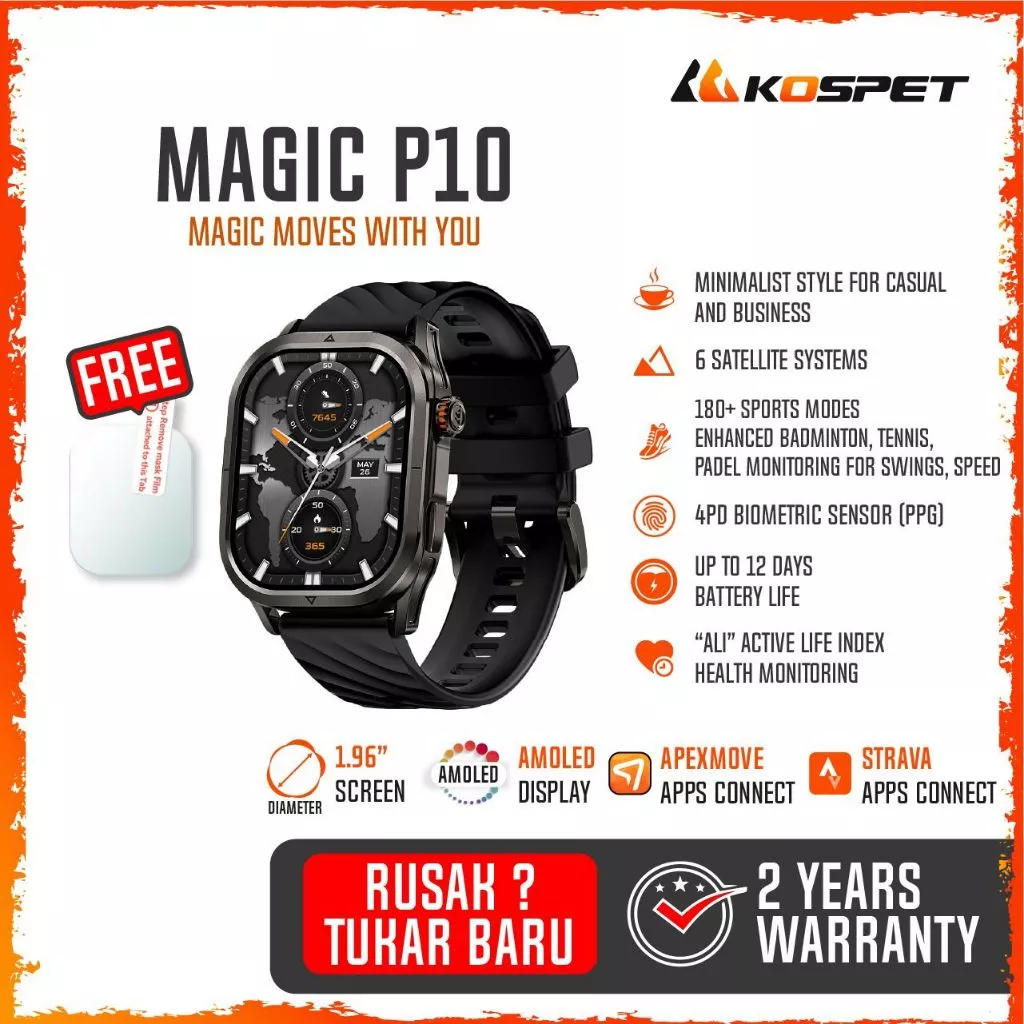 Kospet Magic P10 Professional Sport Smartwatch GPS 1.96” Amoled 180+ Sport Modes Strava Support
