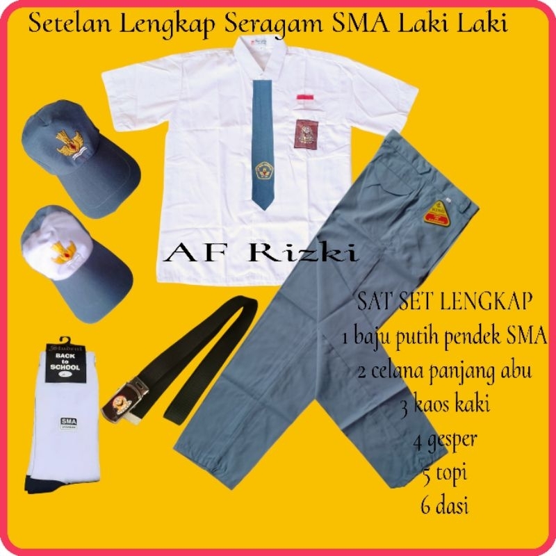 Setelan Seragam Sekolah Sma Abu Putih Baju Pendek Celana Panjang Lengkap