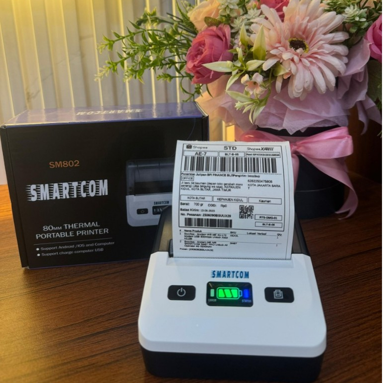 BARU - SMARTCOM PRINTER THERMAL BLUETOOTH 80MM CETAK RESI ALAMAT BARCODE LABEL GARANSI RESMI
