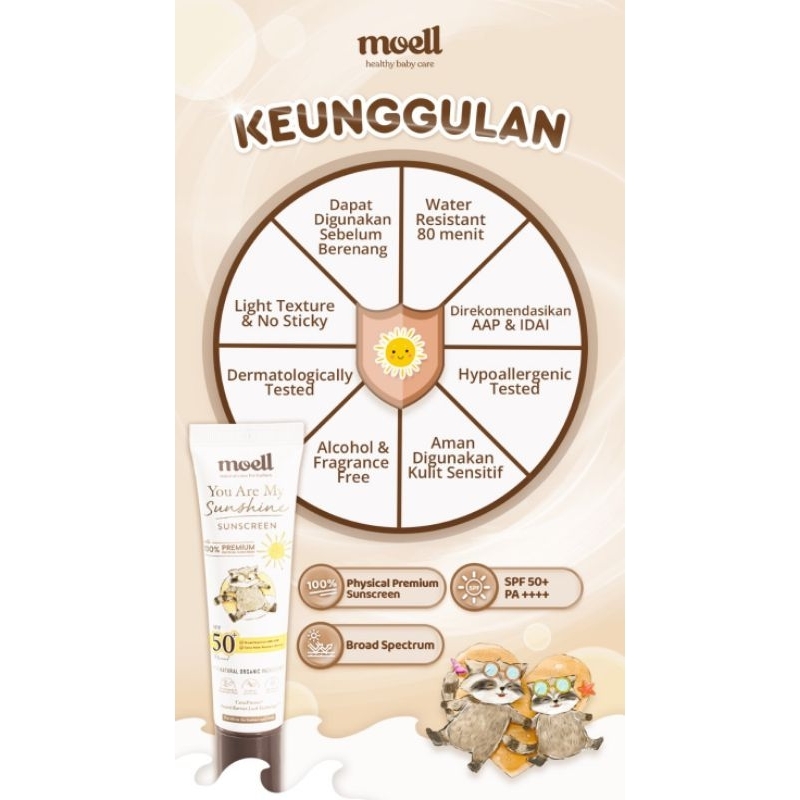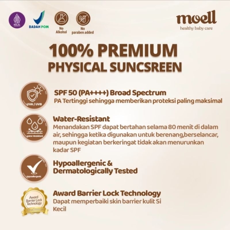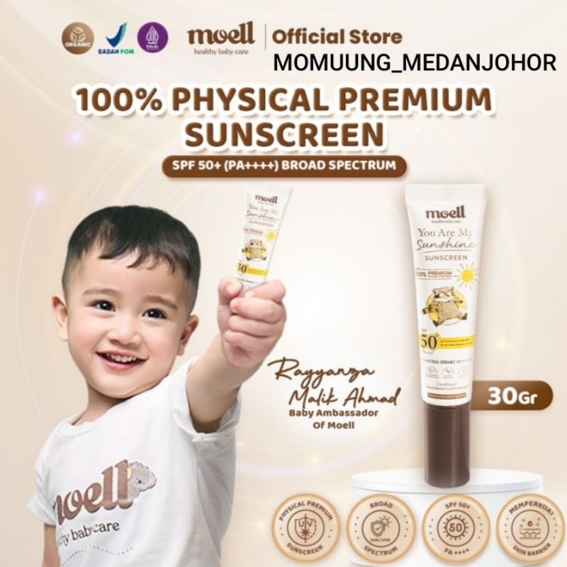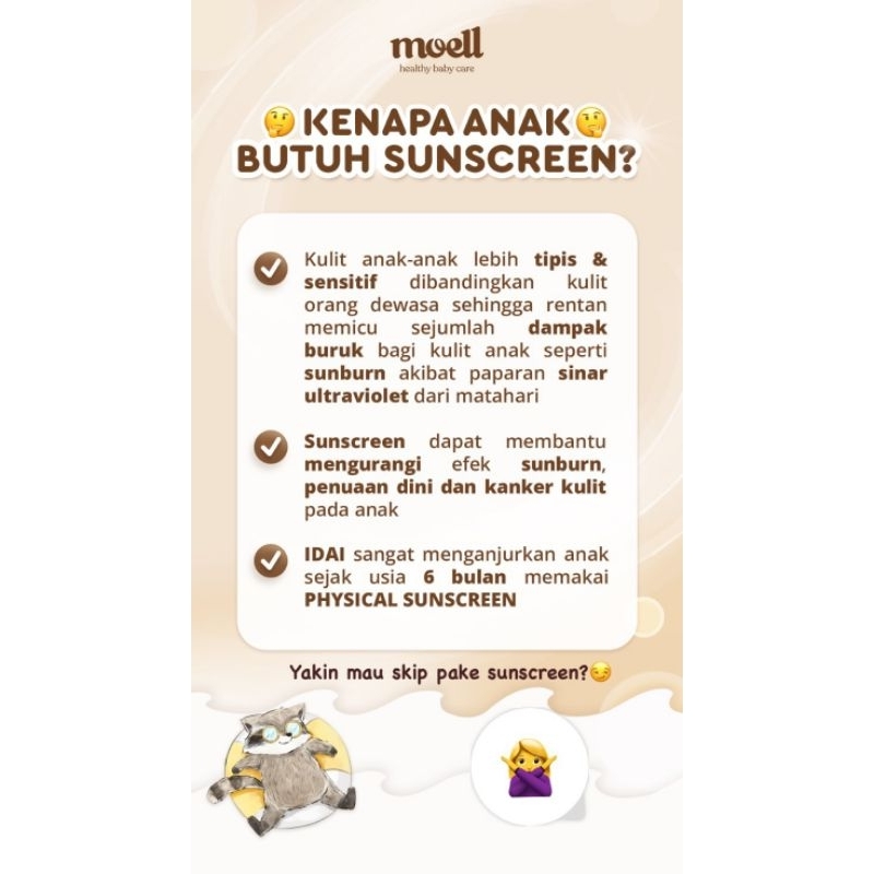 Moell- 100% Physical Premium Sunscreen Bayi & Anak SPF 50+ (PA++++) 30gr / Broad Spectrum UVA - UVB