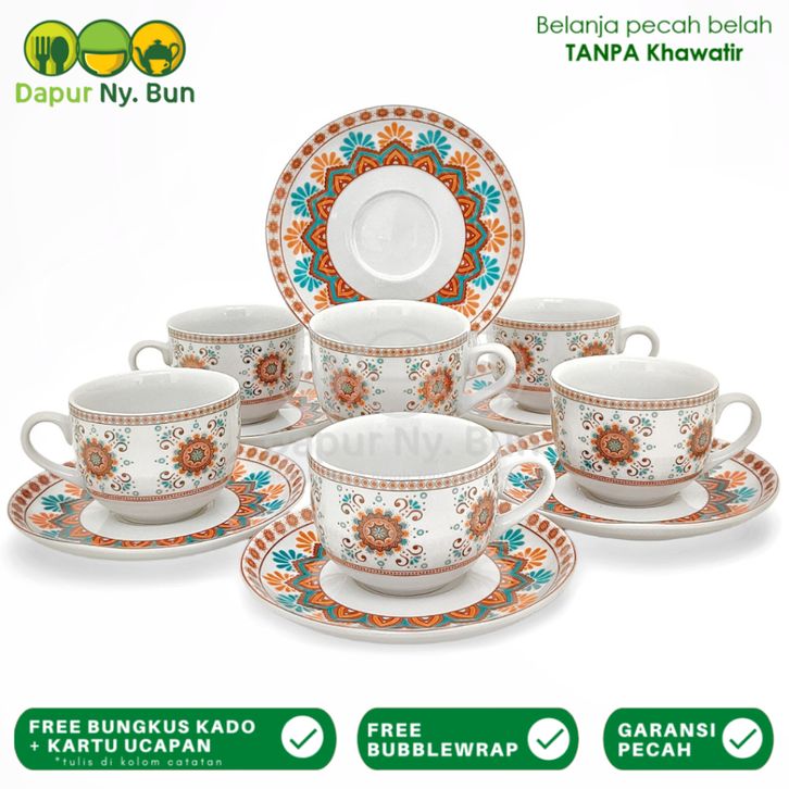 6 Pasang Cangkir Set Motif Marakesh / 6 Cangkir Kopi & 6 Alas Cangkir