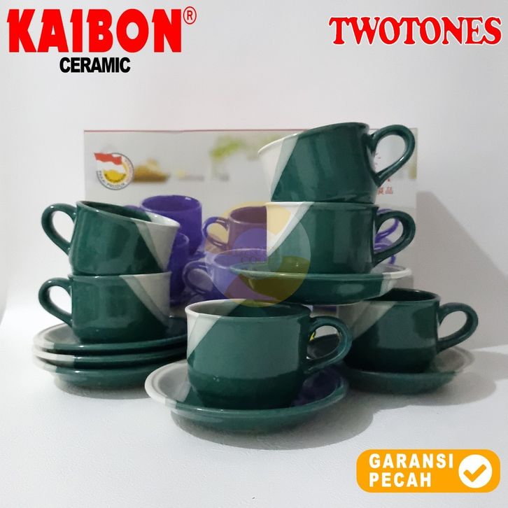 KAIBON 12pcs Twotone Color Series Cup & Saucer Set Cangkir Tatakan 6 Pasang Tosca Gift Box