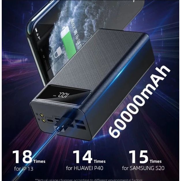 60000mAh Powerbank Fast Charging Full Capacity 4 USB Charge Ports PD Fast Charging Power bank powerbank60000 mah