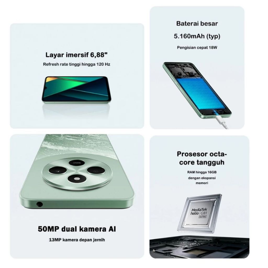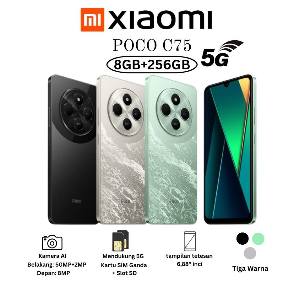 【PELUNCURAN BARU】Asli HP Xiaomi POCO C75 Ram 8/256GB 4G LET 6.88 inci 50MP+13MP Smartphone Dual SIM Handphone Garansi 3