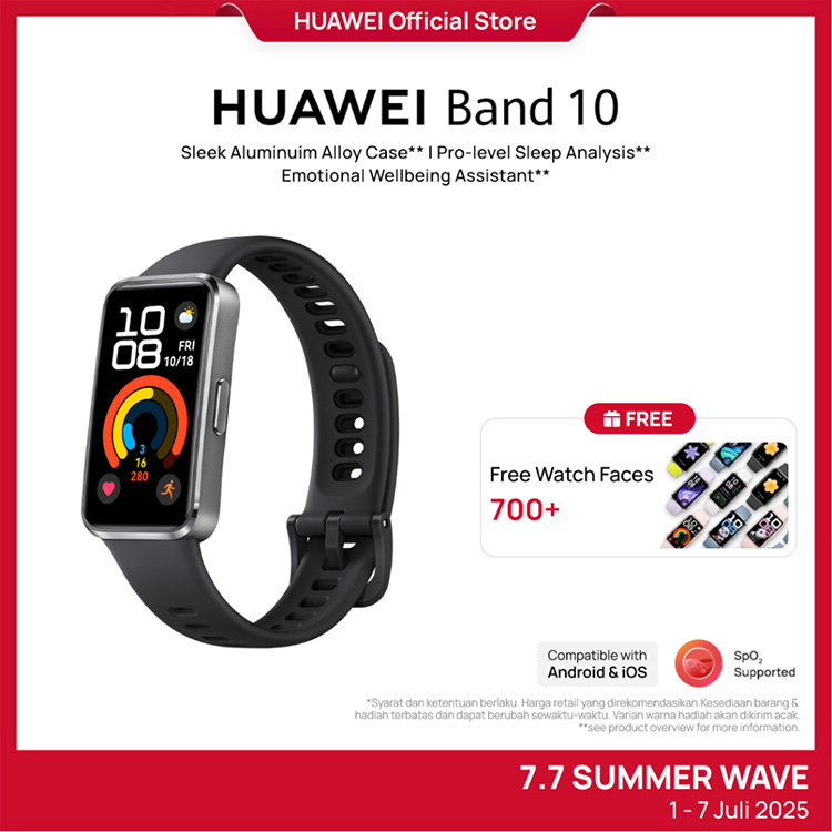 HUAWEI Band 10 Smartband Sleek Aluminum Alloy Case Pro-Level Sleep Analysis Emotional Wellbeing Assistant