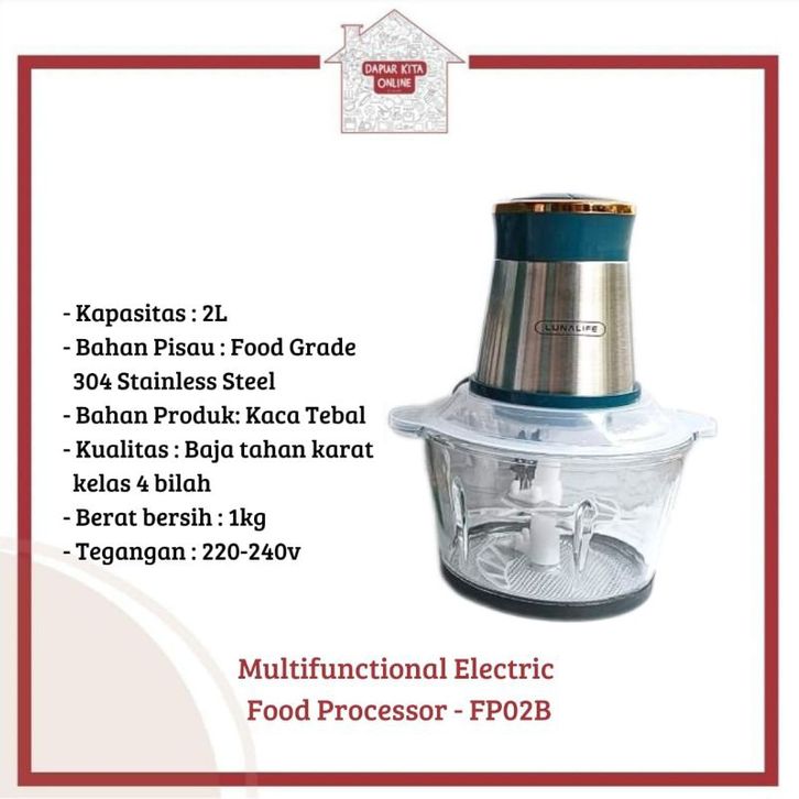 LUNA LIFE BLENDER CHOPPER KAPASITAS 2 LITER FP 02 B / FOOD PROCESSOR PENGGILING DAGING MULTIFUNGSI
