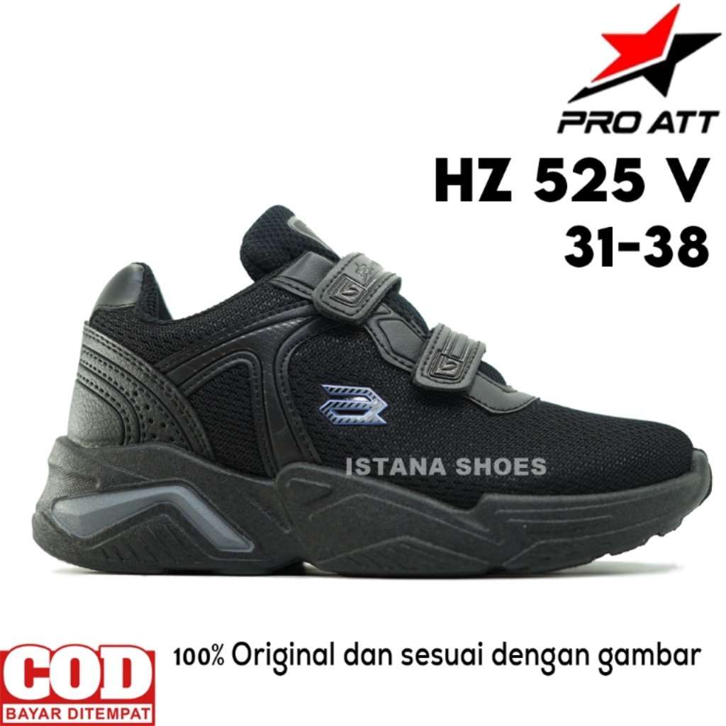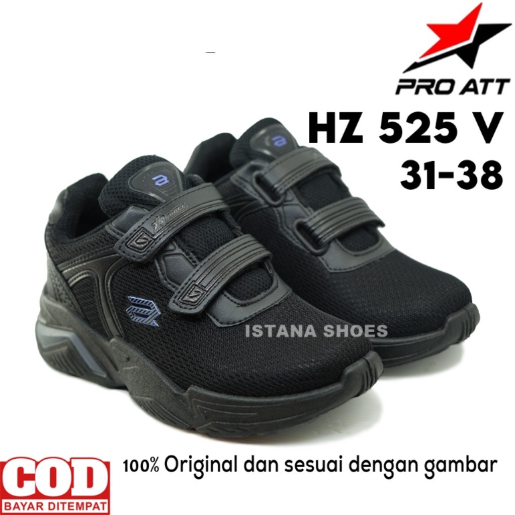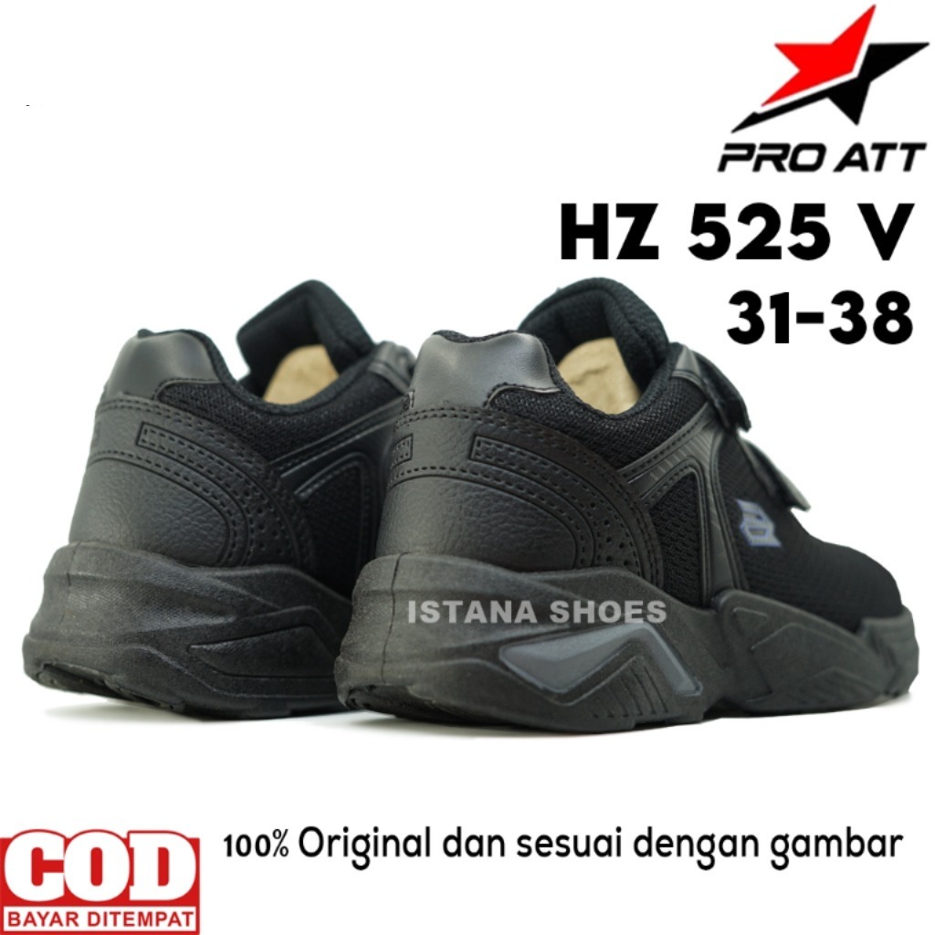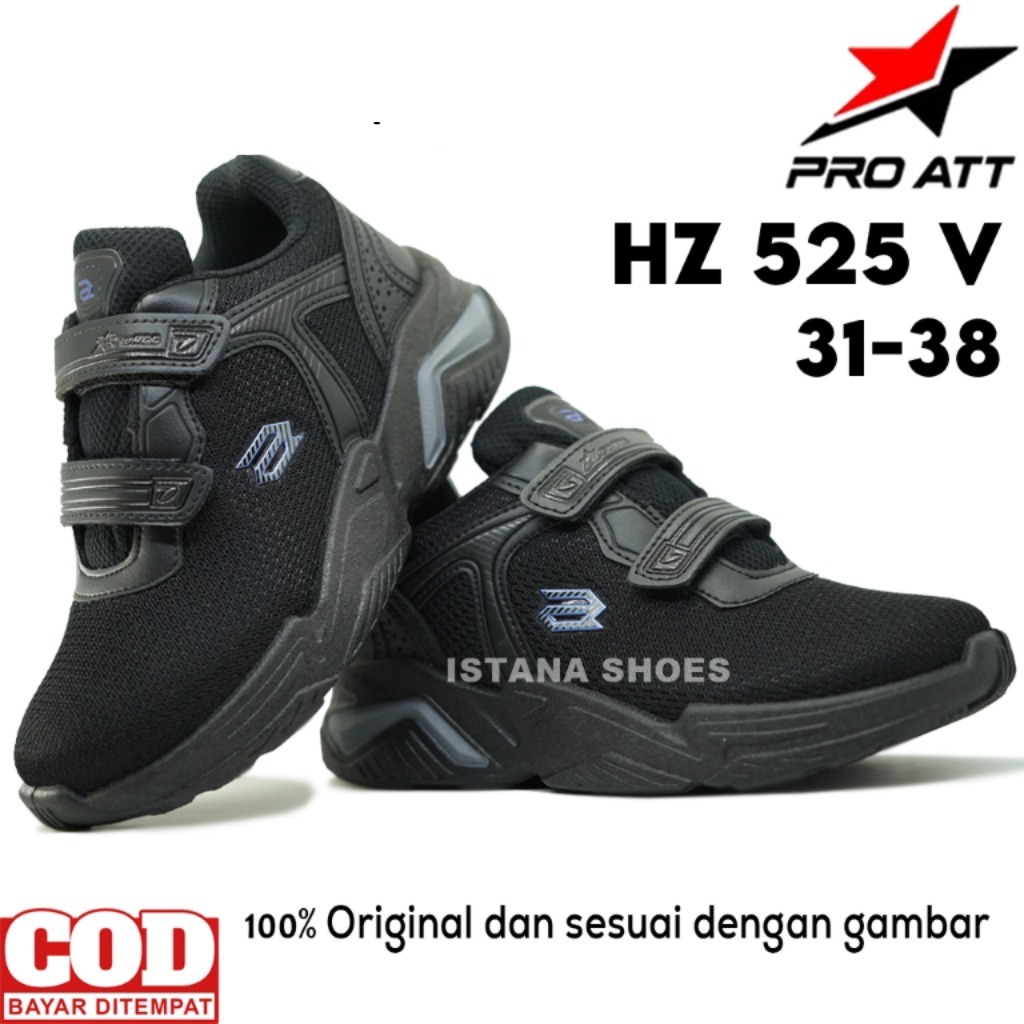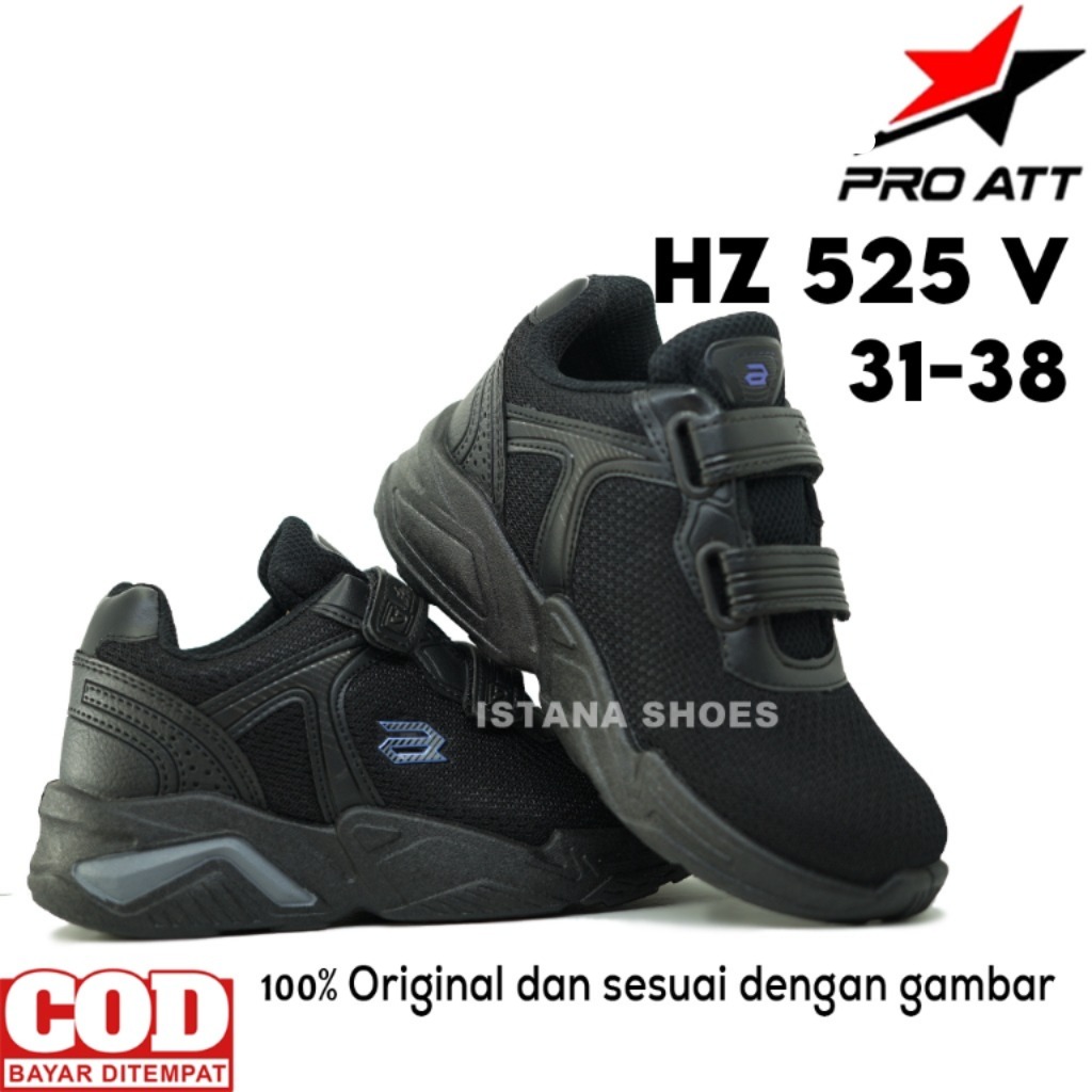 Sepatu Sekolah Anak Laki Laki Perempuan PAUD TK SD SMP FULL BLACK PRO ATT HZ 525 V PEREKAT