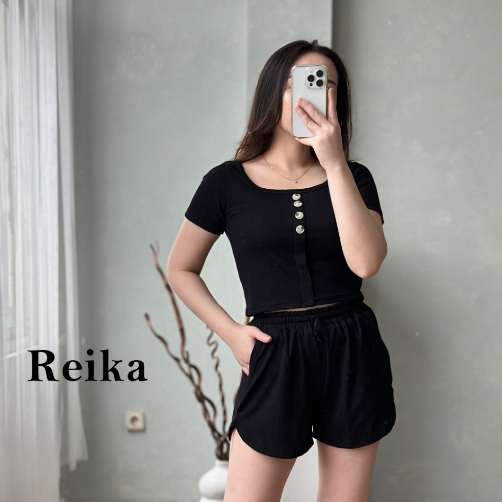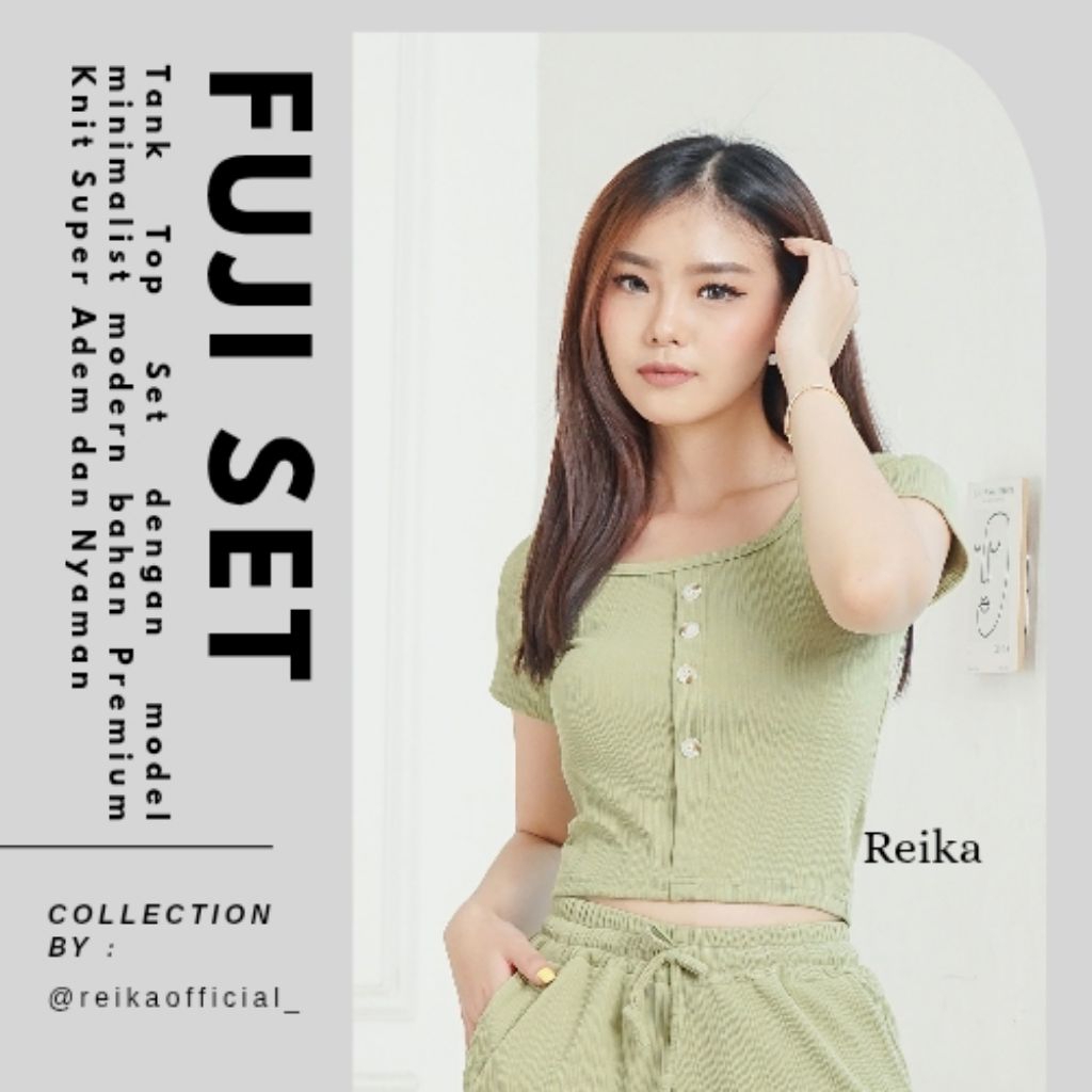 Setelan Baju Wanita Reika FUJI Set Lengan Pendek Bahan Rajut Casual Super Nyaman