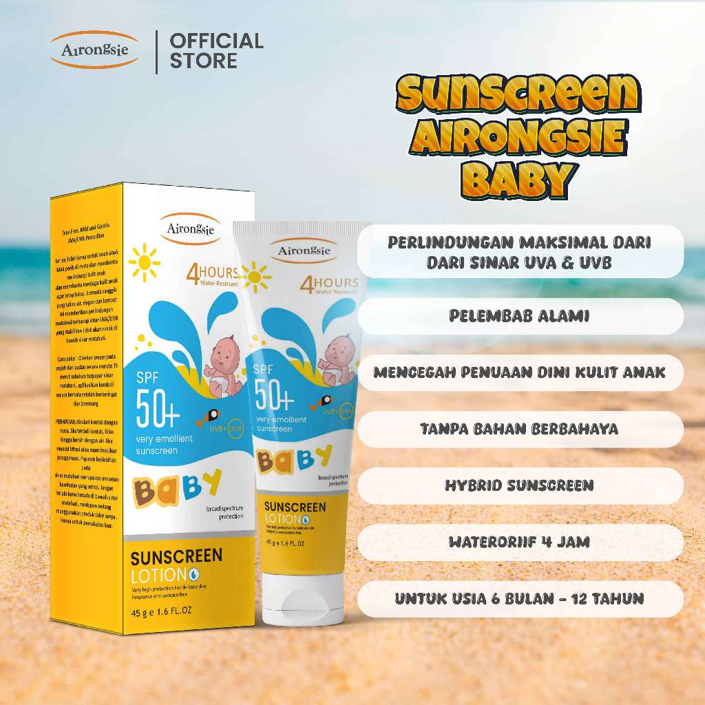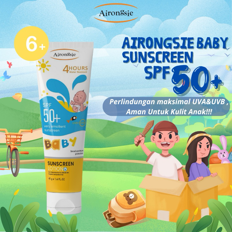 Airongsie Baby & Kids Sunscreen SPF 50+ – 4 Jam Waterproof & Broad Spectrum