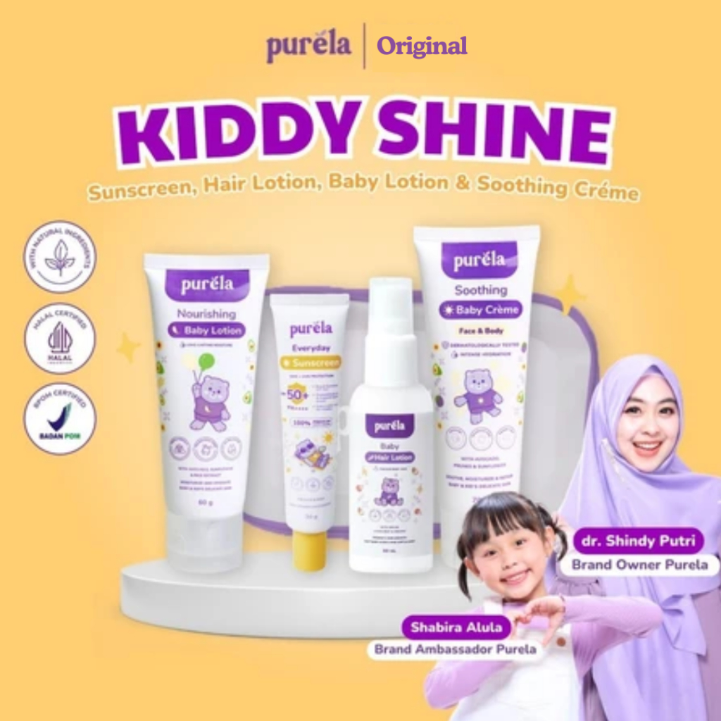 PURELA KIDDY SHINE Sunscreen, Soothing Creme, Hair Lotion, Nourishing Lotion | Paket Perawatan Anak Perawatan Bayi Lotio