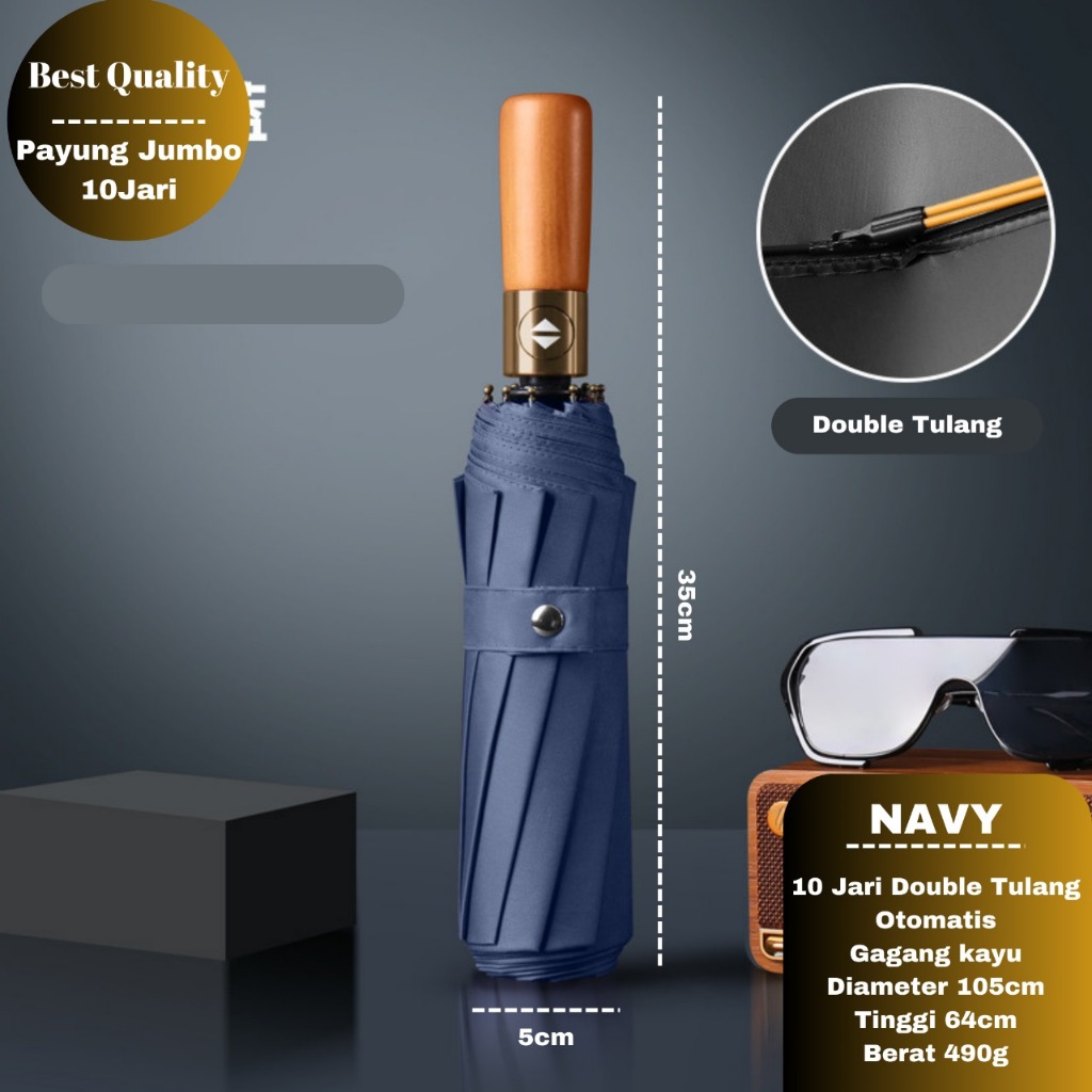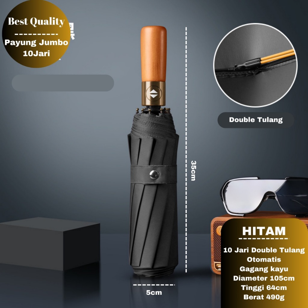 Payung Lipat Buka Tutup Otomatis Gagang Kayu Anti UV Super Premium Elegan Ukuran Jumbo Kokoh