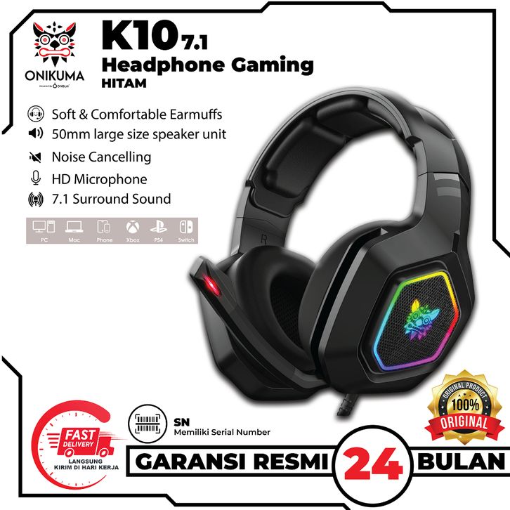 ONIKUMA K10 7.1 Headset Gaming Mic Full Bass Rgb Light Black For PC Laptop dan HP Headphone Gaming