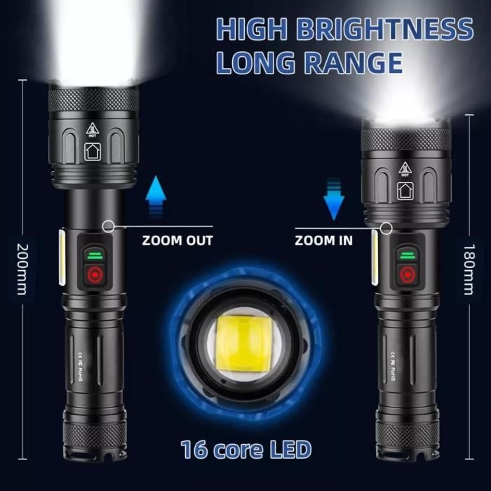 Senter LED SWAT POLICE 200W NYPD COB RED-BLUE Rechargeable Cas 200Watt - Senter+18650