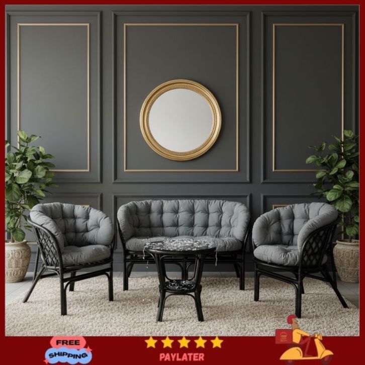Kursi Teras Depan Rumah Kursi Bahama Rotan Alami Satu Set Kursi Ruang Tamu Sofa Kursi Teras Rotan