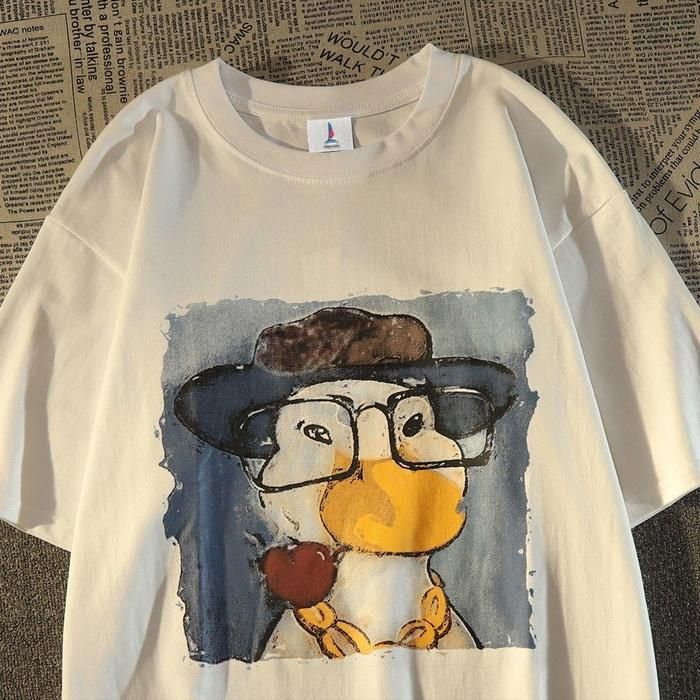 100% pure cotton heavyweight American retro short sleeved t-shirt loose trendy brand couple top - BLACK S