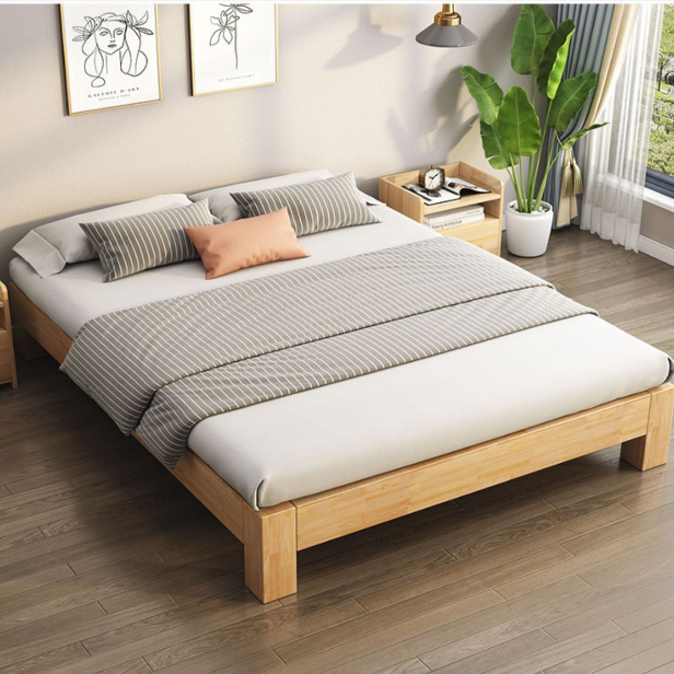 Tempat Tidur Kayu 120/160/180CM Dipan Lantai Tempat Tidur Minimalis 100 PERSEN Kayu Solid
