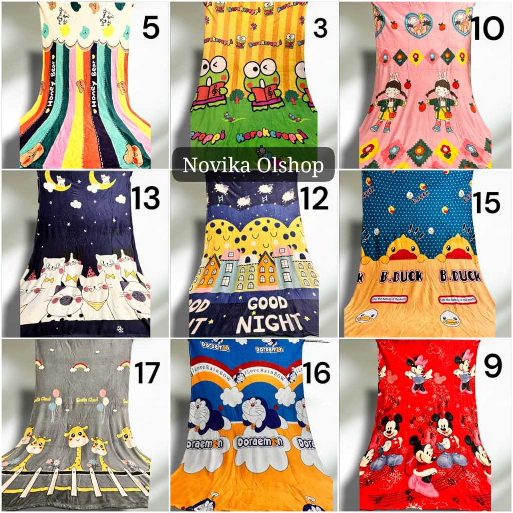 Selimut Karakter Anak Bulu Halus Lembut Motif Kartun Ukuran 150 x 200 cm Anti Rontok