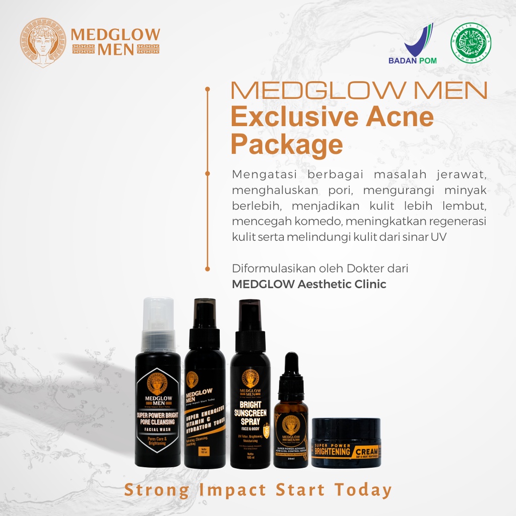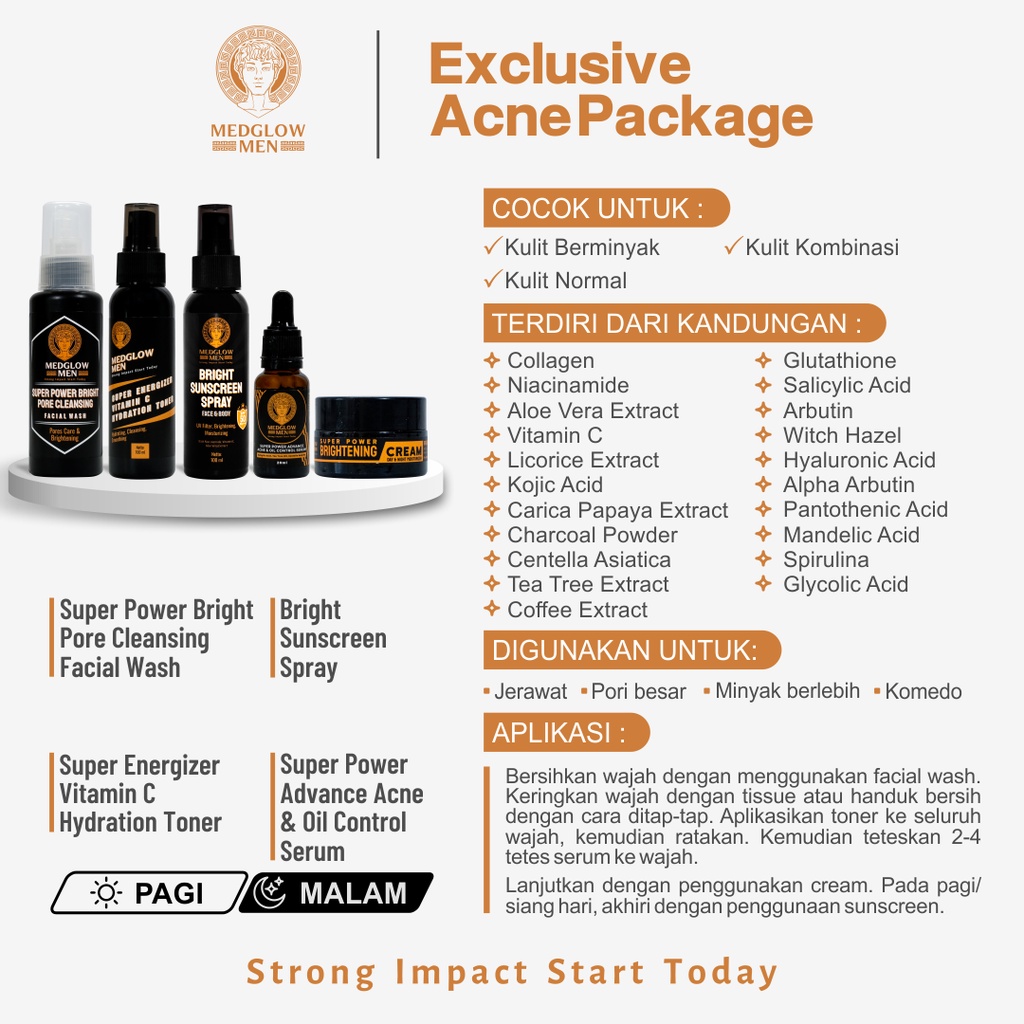 Paket EXCLUSIVE ANTI ACNE BRIGHTENING Skincare Pria Package + Bonus Tas Kulit | BPOM HALAL Perawatan Kulit Laki-Laki K