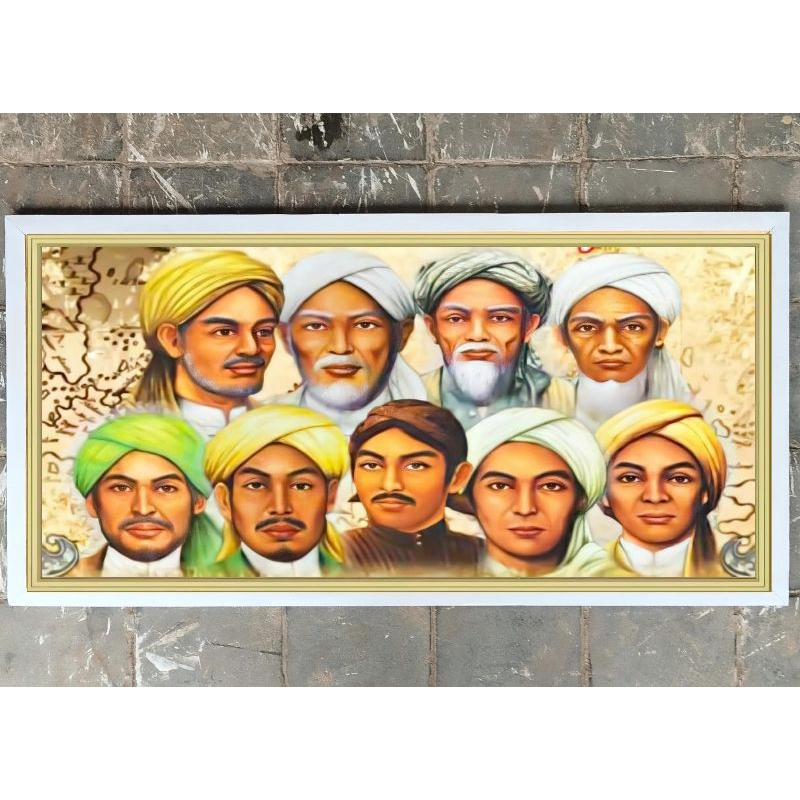 hiasan dinding lukisan cetak walisongo plus bingkai ukuran 10555