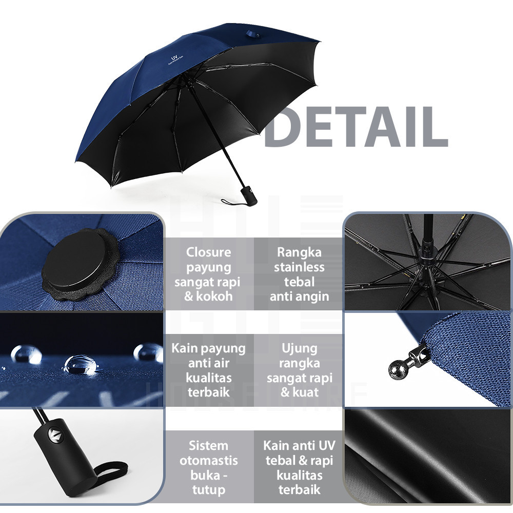 HUGO Payung Anti UV Korea Payung Lipat Otomatis Polos Anti Panas Sinar Matahari Premium