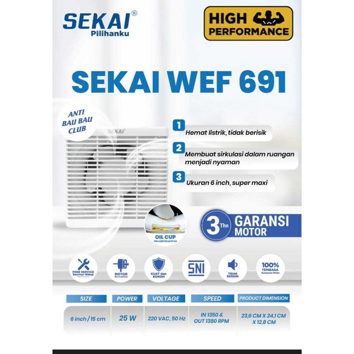 SEKAI Exhaust Fan Dinding Kipas Angin Hexos Tembok 6 Inch WEF 691 GARANSI RESMI