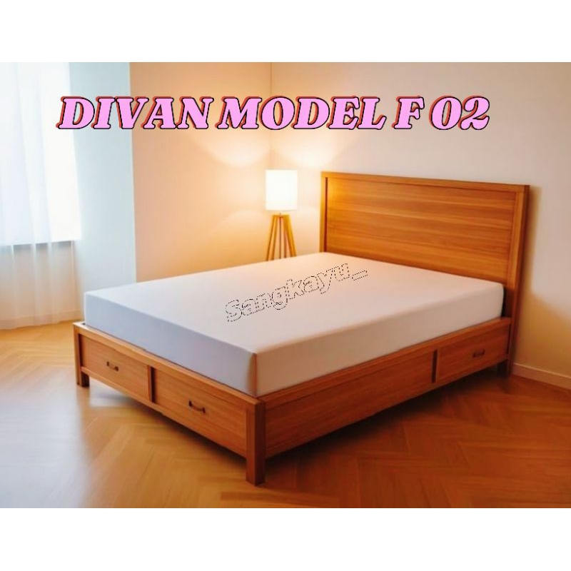 Divan laci kayu mahoni model F 02 minimalis kokoh full kayu dipan rangka tidur modern minimalis