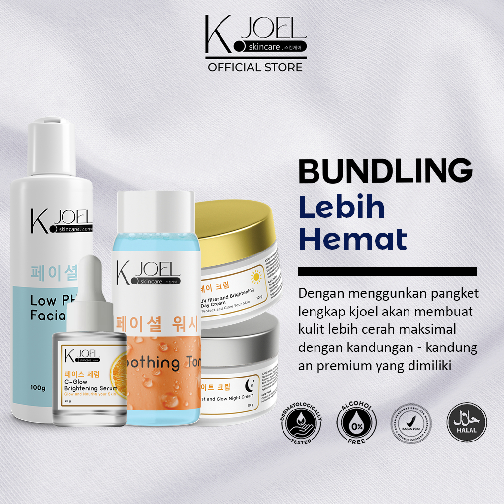 SKINCARE WANITA GLOWING BPOM / J. KJOEL PAKET BUNDLING BRIGHTENING DAY NIGHT CREAM TONER WAJAH SERUM VIT C FACIAL WASH 5