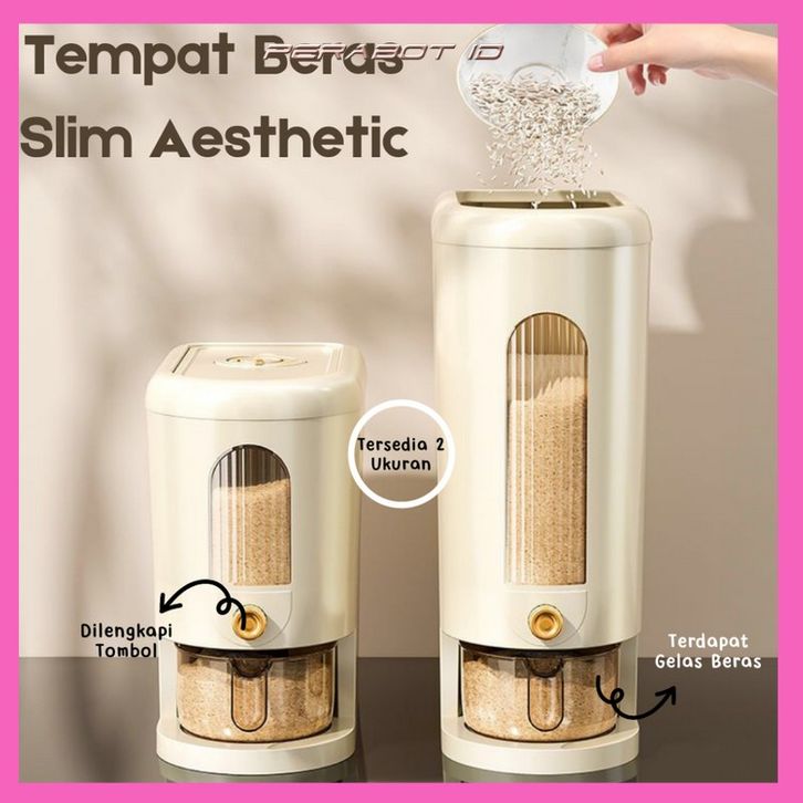 Alby Mart Dispenser Beras Estetik Slim Tempat Wadah Penyimpanan Beras Mewah 5 Kg & 10 Kg