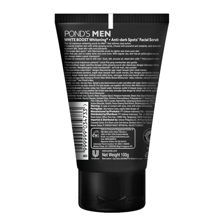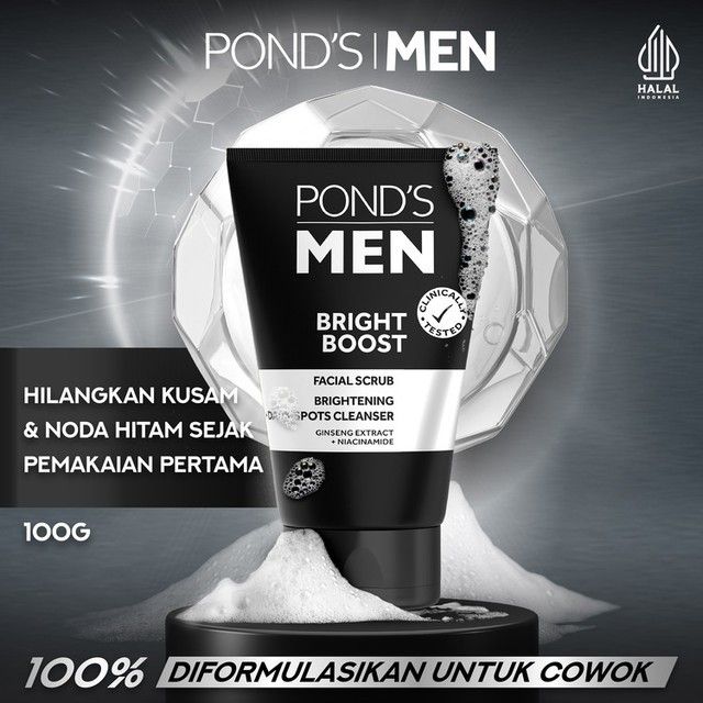 Ponds Men Facial Wash Bright Boost 100G - Pencuci Muka Untuk Pria, Sabun Jerawat Pria