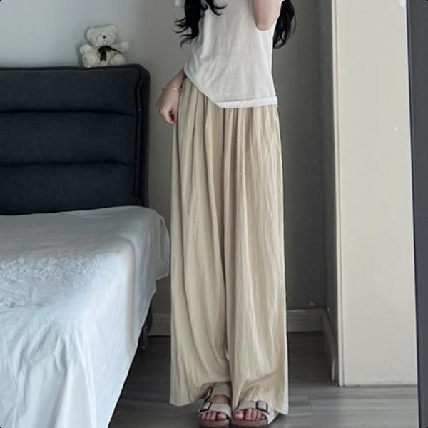 GDTIMA Casual Ice Silk Celana Highwaist Wanita Polos Loose Pants Pinggang Elastik Celana Panjang - olive green M