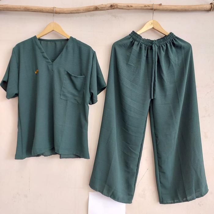 One Set Crinkle Airflow CP - Setelan Wanita Dewasa Lengan Pendek Celana Panjang - Mustard