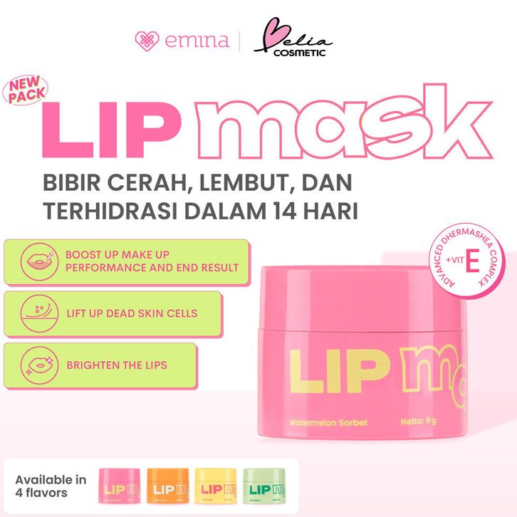 ❤ BELIA ❤ EMINA Lip Mask 9 g - Masker Perawatan Bibir Lembab, High-Moisture Tech, Mencerahkan bibir, menghaluskan dan m