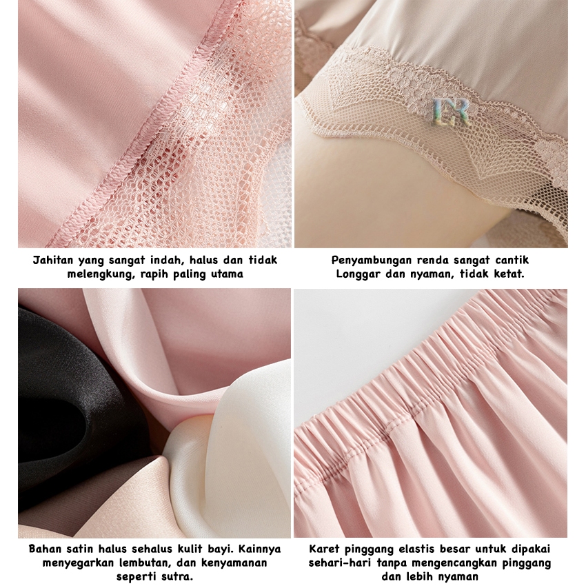 Celana Pendek Santai Dengan Renda Bahan Satin Premium