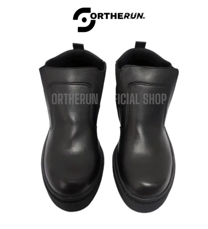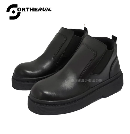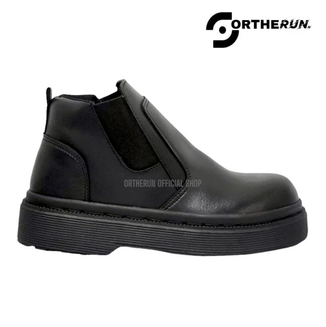 ORTHERUN Sepatu Safety Boots Wanita Full Black Sepatu Ujung Besi Wanita Sepatu Kerja Wanita Kitchen Proyek Lapangan