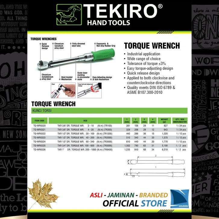Kunci Torsi 1/2" inch 40 - 200 N.m Gagang Momen - Torque Wrench TEKIRO