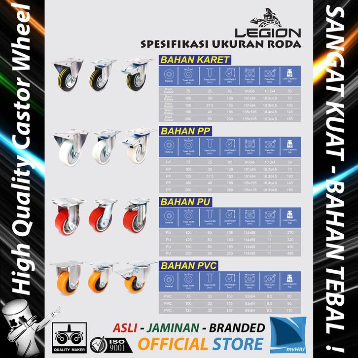 Set Roda Lori Isi 4 pcs 8" inch / 200 mm Roda Besi-PU Caster Troli - Trolley Castor Set 2R2M LEGION