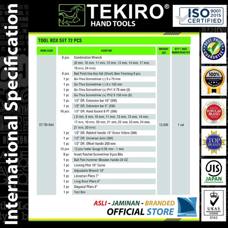 Perkakas Kunci Mekanik / Tukang Isi 72 pcs / Set Tool Box Kits TEKIRO