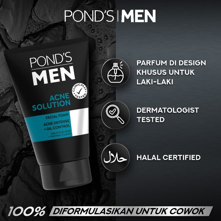 PONDS MEN Acne Solution Facial Wash Foam 100g - Sabun Cuci Muka Khusus Cowok untuk melawan masalah jerawat di muka
