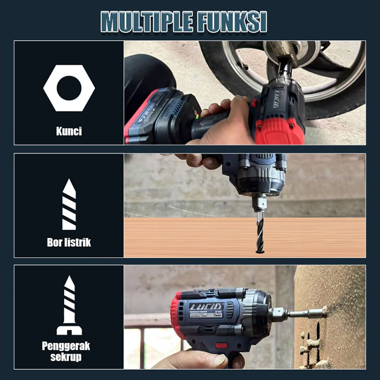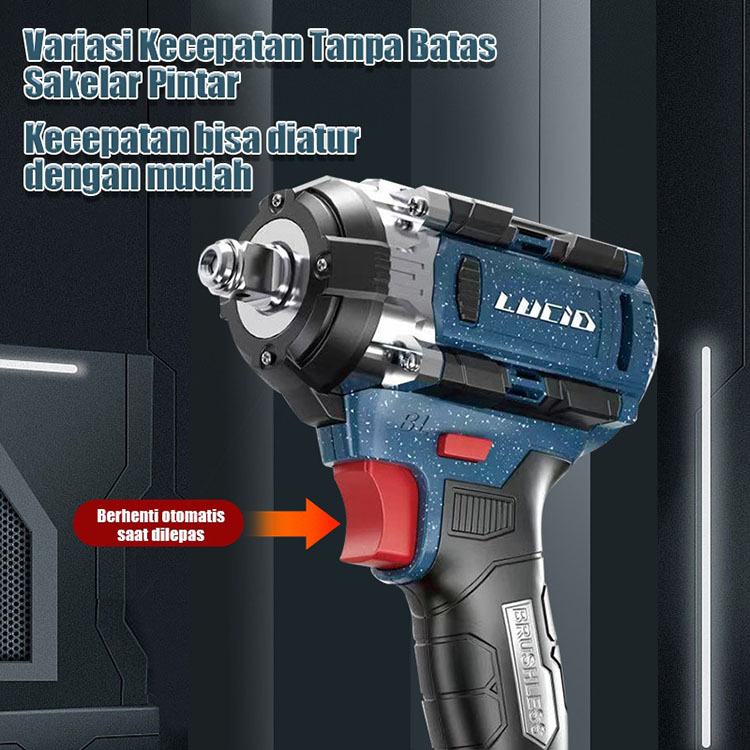 LUCID LH400 Brushless Wrench 450N.M Impact Baterai Cordless Mesin Bor