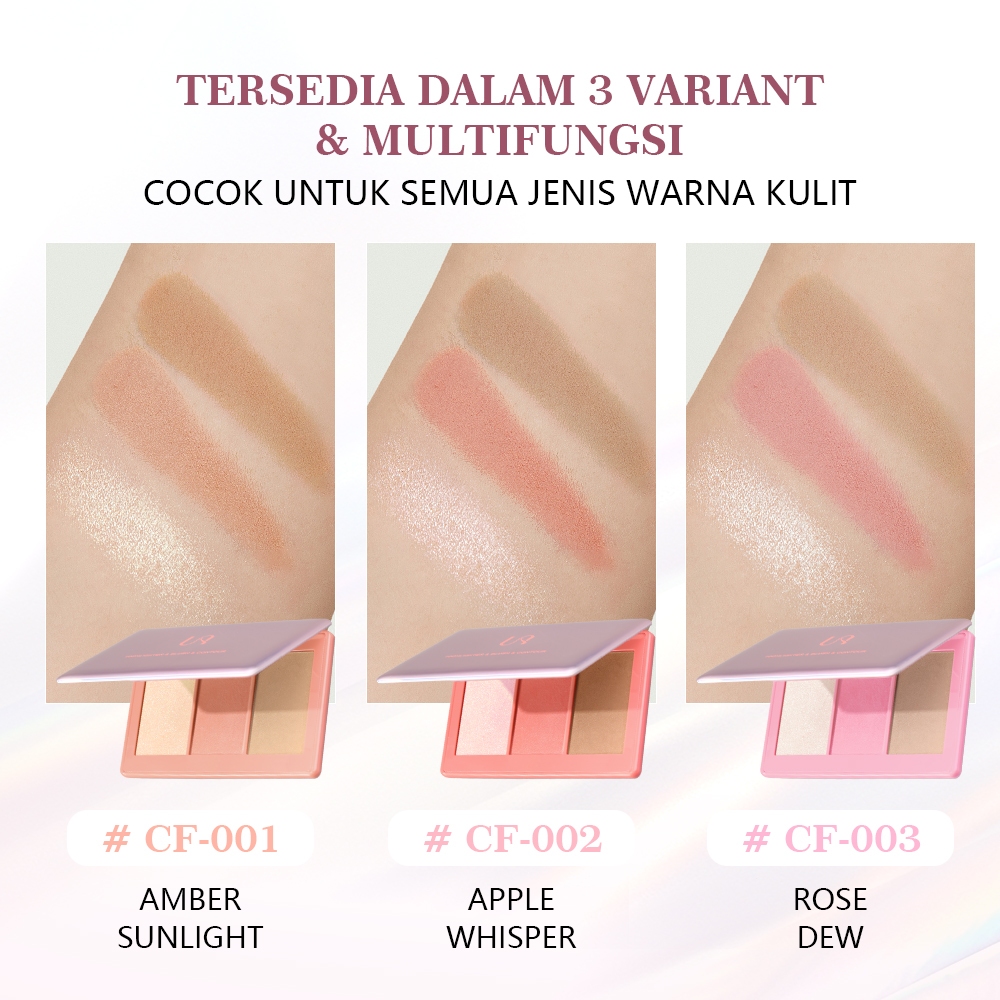 URRACX Blush On Cream Contour Dan Highlighter Face Palette Multi-Use 3in1 Long Lasting High Pigmented Powder Korean Makeup 12G
