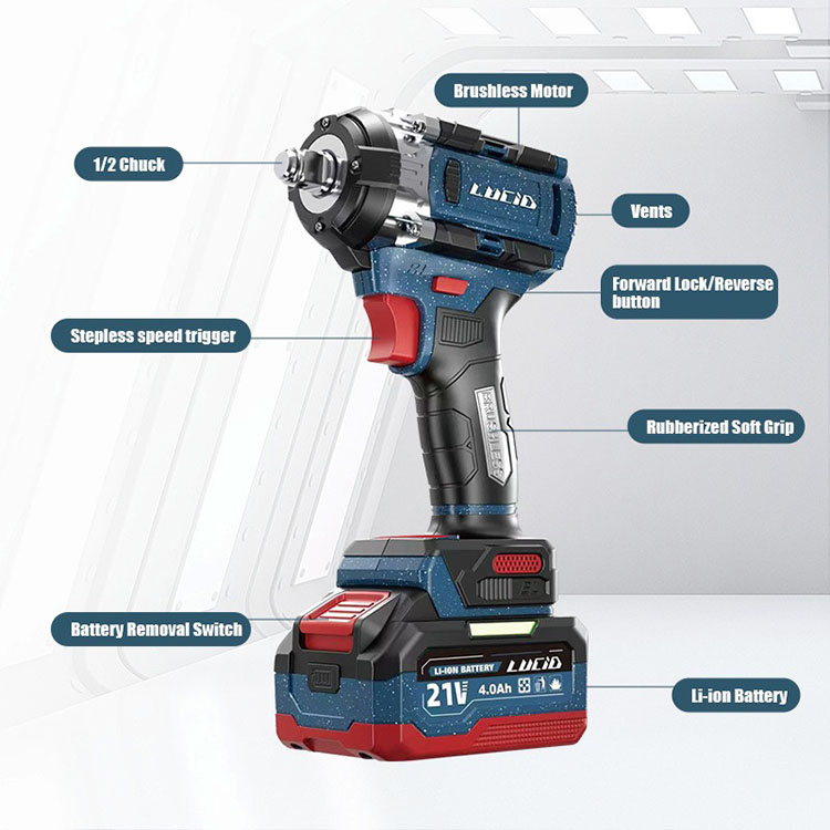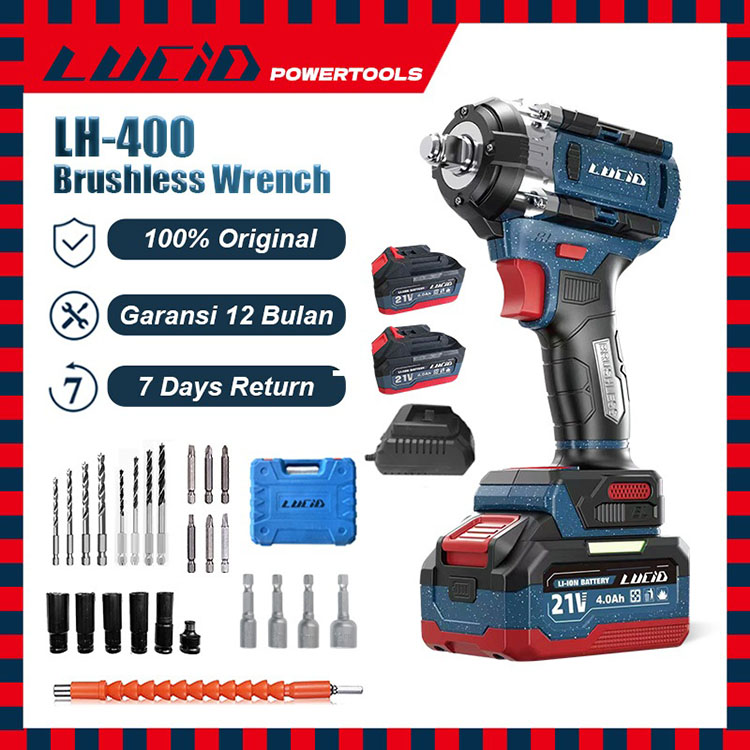 LUCID LH400 Brushless Wrench 450N.M Impact Baterai Cordless Mesin Bor
