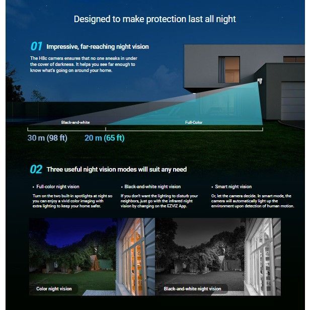 Ezviz H8c 2mp Outdoor CCTV Pan & Tilt Wifi IP Camera Auto Tracking 1080p