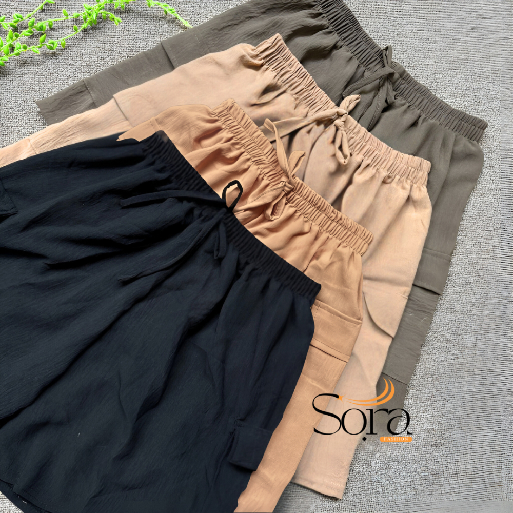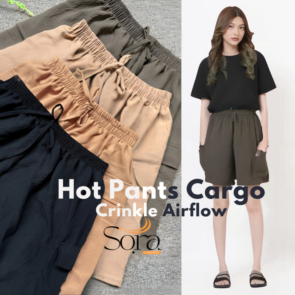 Celana Pendek Jumbo Wanita Crincle Airflow Premium / Hotpants Cargo Crincle