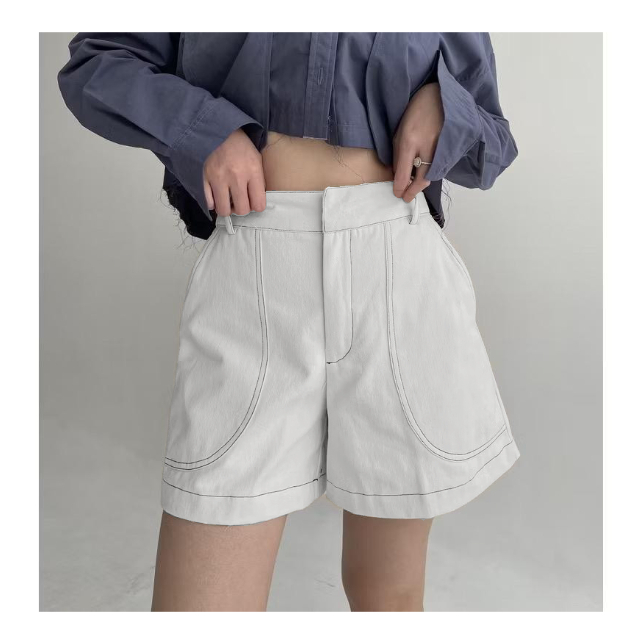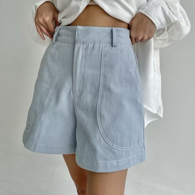 Hotpants Karina Contrast Stitch Short Premium Pants Celana Pendek Streach Wanita Denim Look Alike