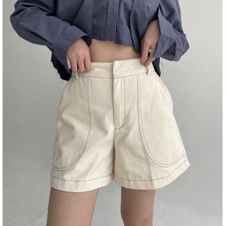 Hotpants Karina Contrast Stitch Short Premium Pants Celana Pendek Streach Wanita Denim Look Alike
