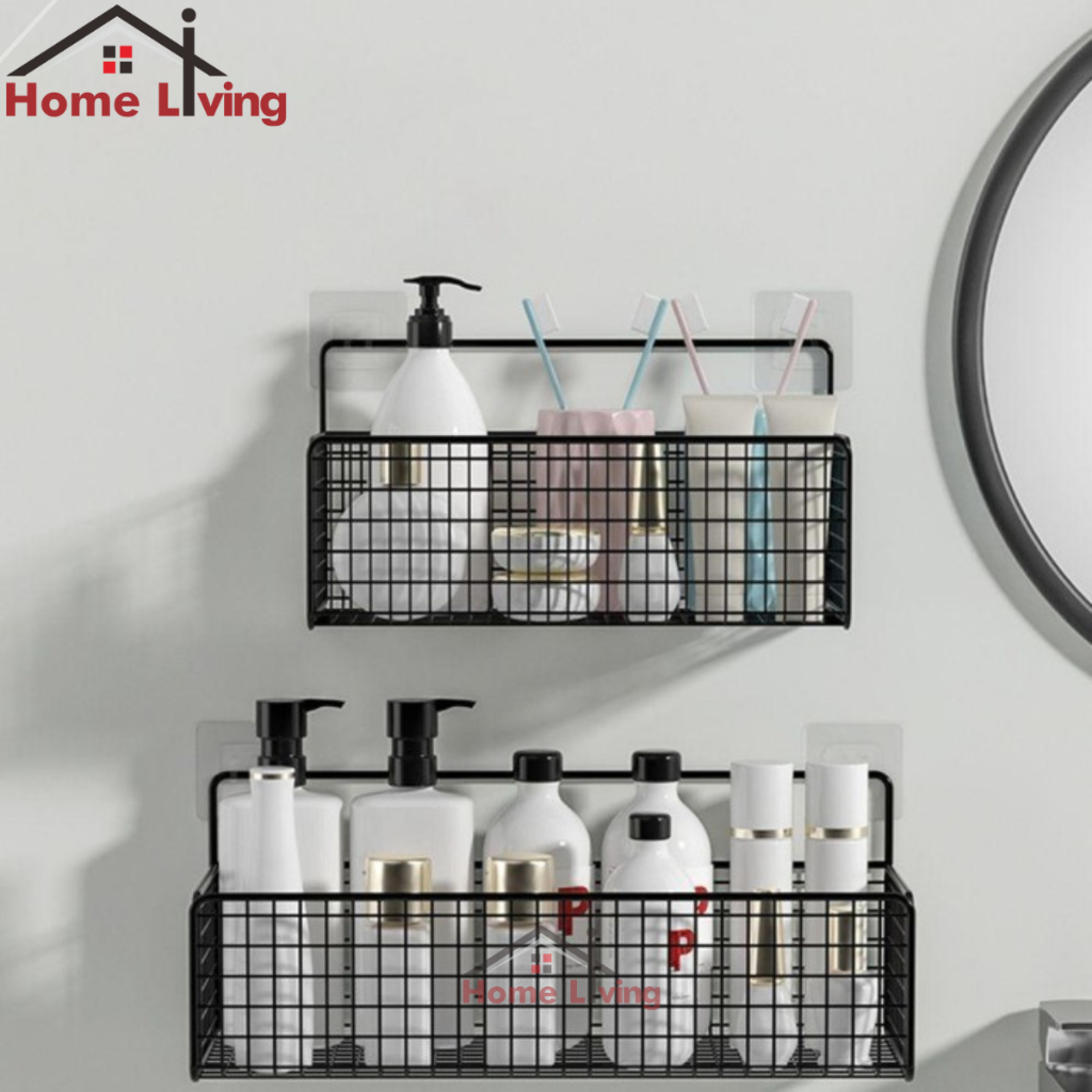 Rak Kamar Mandi Tempel Dinding – Model Keranjang Jaring Besi, Simple & Elegan