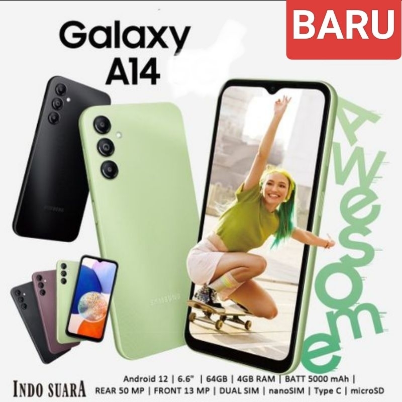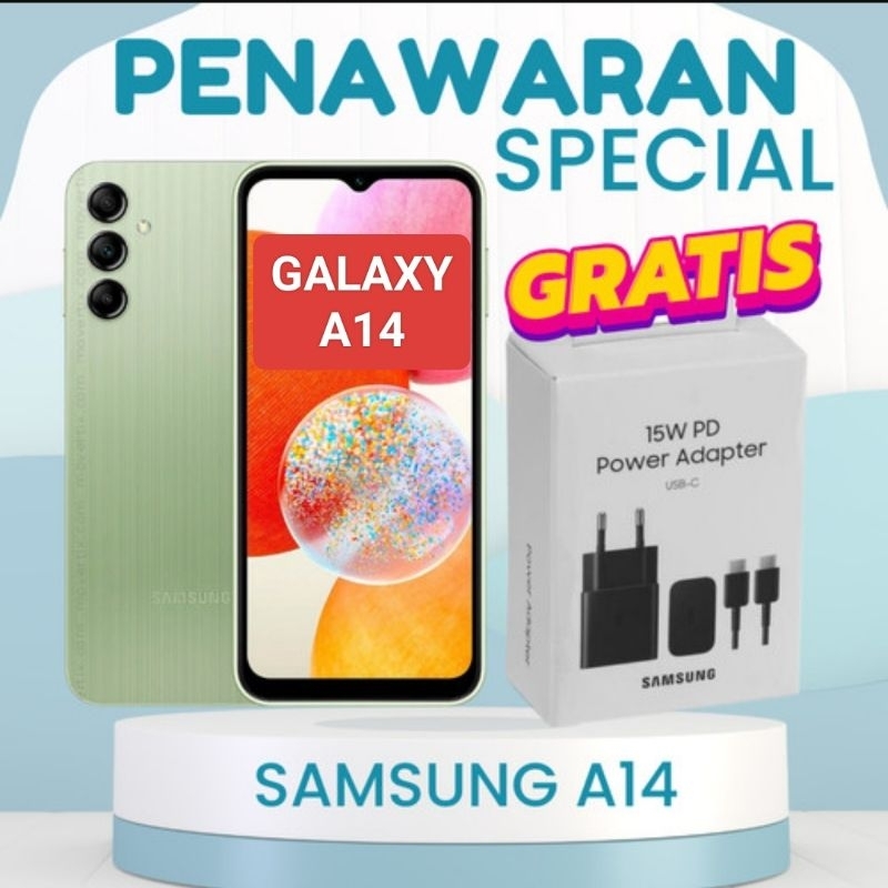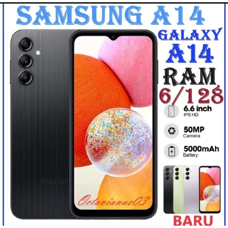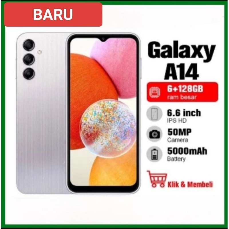 Hp SAMSUNG GALAXY A14 0RI RAM 6/128GB [Layar6,6inci"Dual Sim"Camera50MP+13MP"4G LTE] FULLSET GARANSI 1TAHUN