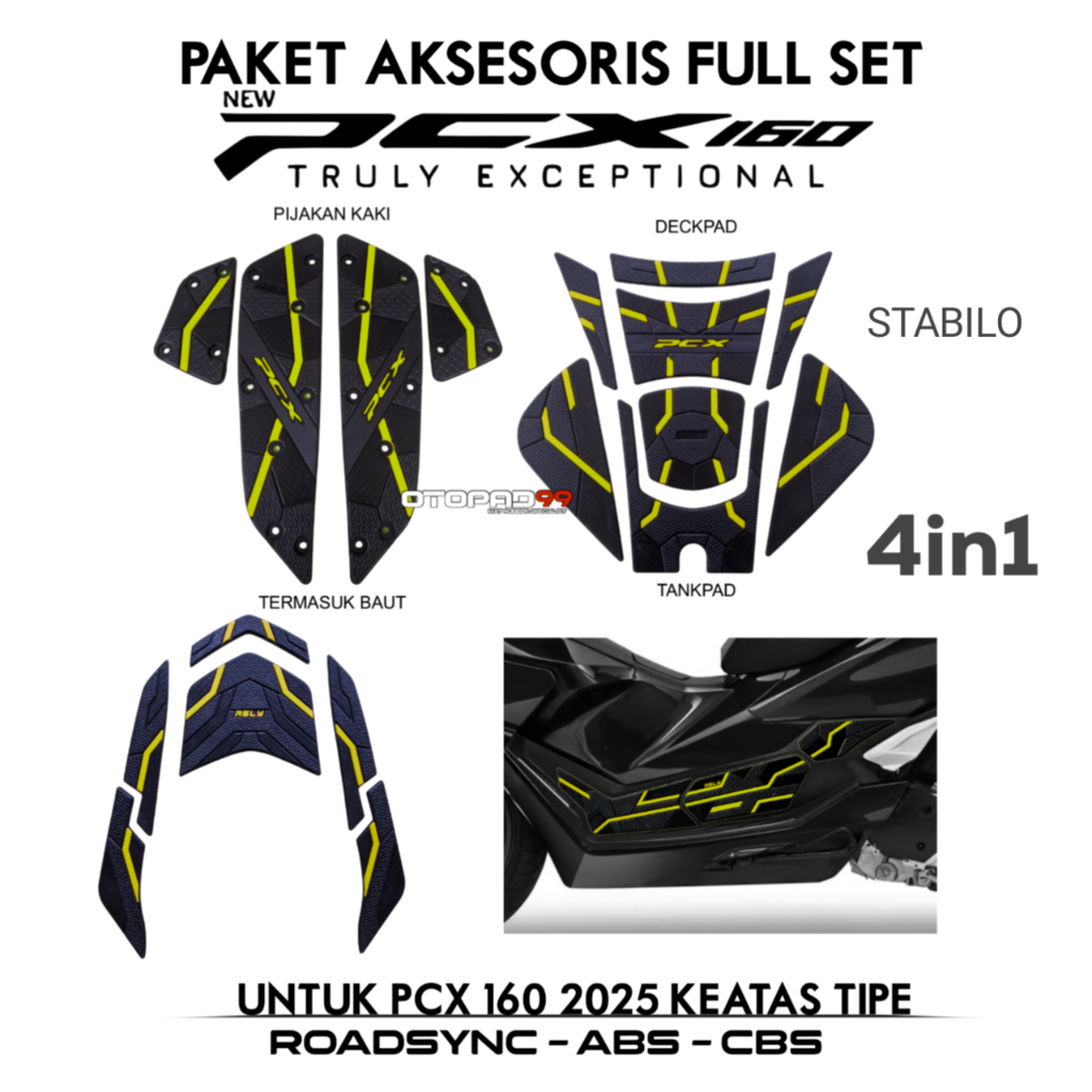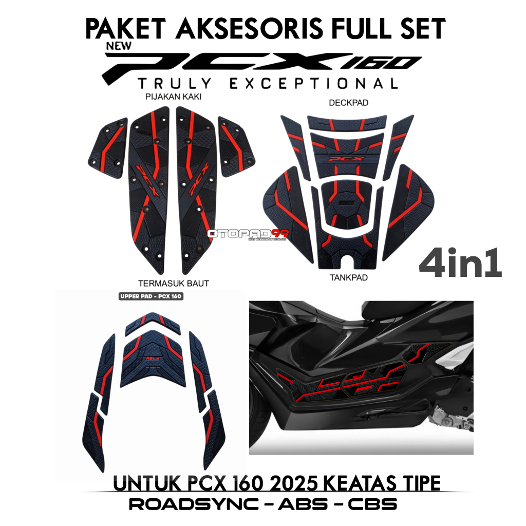 PAKET AKSESORIS MOTOR HONDA PCX 160 2025 BAHAN KARET SIDEPAD PCX TANKPAD PCX UPER STOPLAM PCX 160